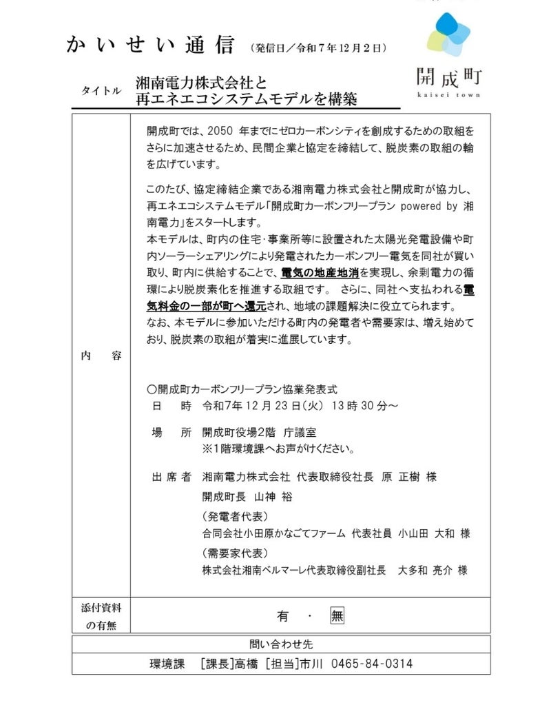 開成町のプレスリリースの書き方はちょっと気に入らないので私なりに書き換えます。