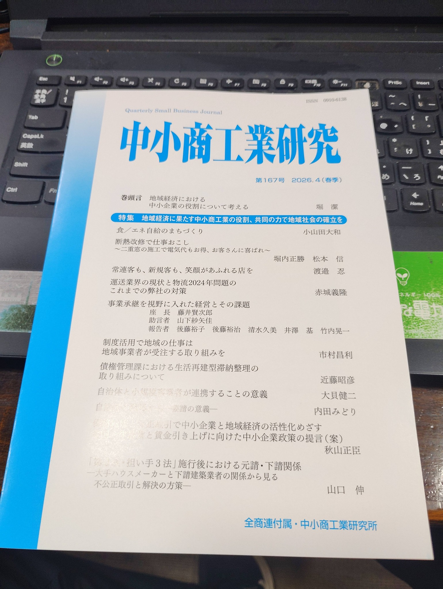 中小商工業研究167号に掲載されました。✨